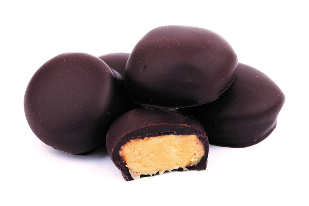 Tangy natural flavoured blood-orange fondant enrobed in rich dark chocolate. . The natural orange oil is enhanced by the bitter dark cocoa..