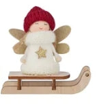 Brighten your holiday décor with this playful 13cm angel on a wooden sleigh, dressed in festive red and white fabric. Perfect for adding a touch of whimsy and cheer, this charming figure brings joyful spirit and cozy charm to any shelf or tabletop. Two delightful styles make decorating even more fun!