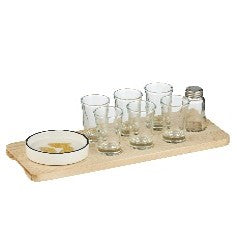 Bring the fiesta to your home with our Bottoms Up 9 Piece Tequila Set! This set includes everything you need for the perfect tequila experience, from shot glasses to a salt shaker and lime tray. Impress your guests and elevate your tequila game with this must-have set. Salud!