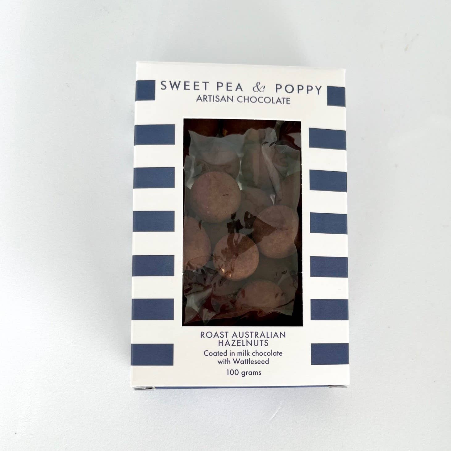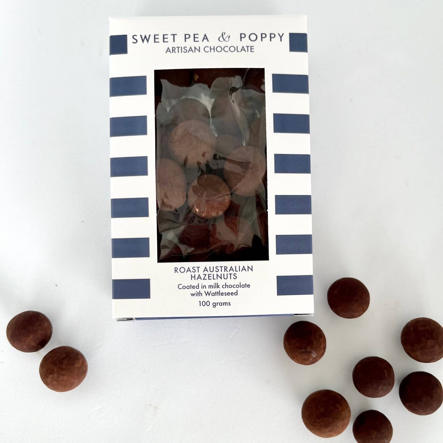 Local roast Australian hazelnuts inside a creamy milk chocolate with native Wattleseed.