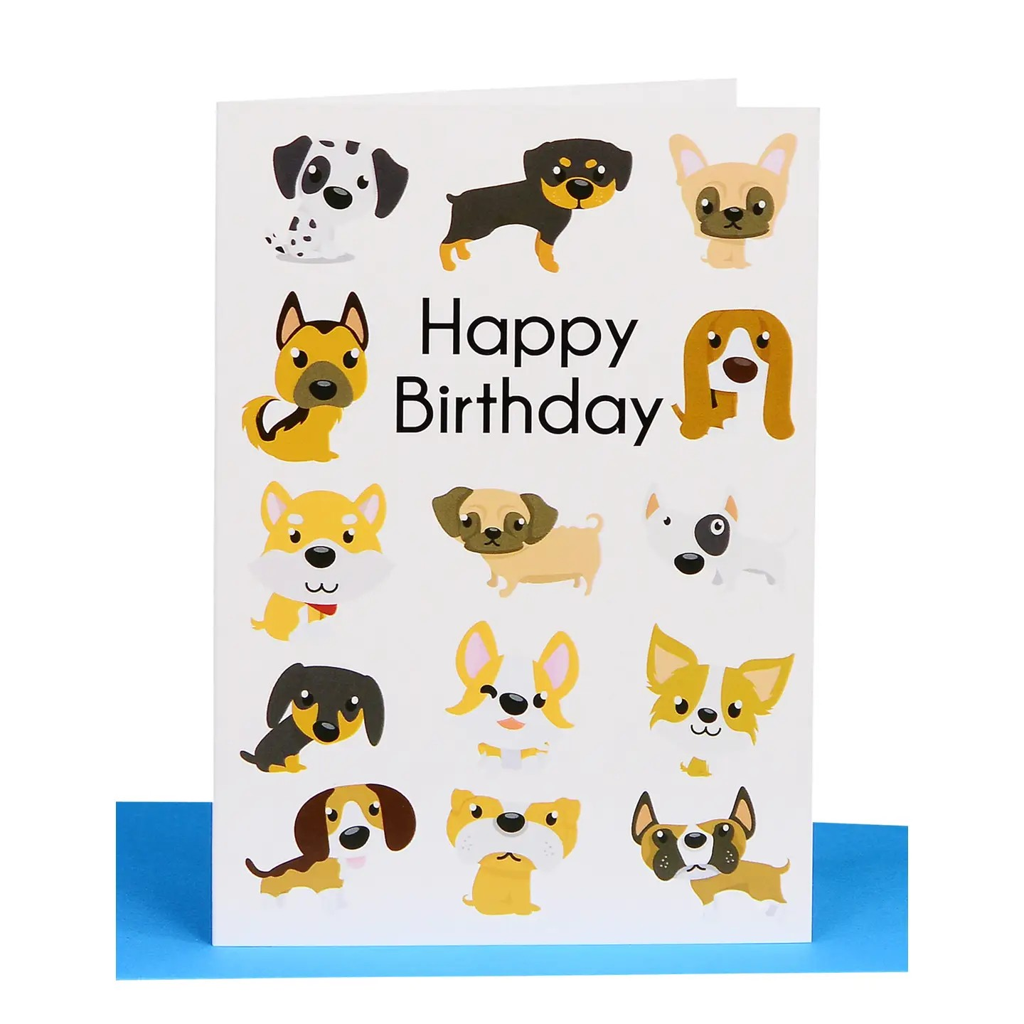 Celebrate another year of living like a dog with this Happy Birthday Greeting Card featuring a playful pack of pooches. Perfect for the dog lover in your life, this card will definitely make them smile (and maybe even bark with joy)! Woof woof!