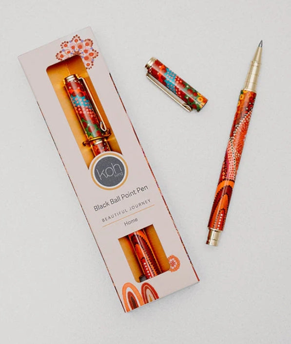 Introducing our new "Home" Ball Point Pen, designed in collaboration with First Nations artist Jacinta-rai Ridgeway Maahs. This stylish black ink pen features Jacinta’s unique artwork, capturing the beauty and cultural depth of First Nation design. Perfect for thoughtful gifts or personal use, it brings art, functionality, and heritage together beautifully.