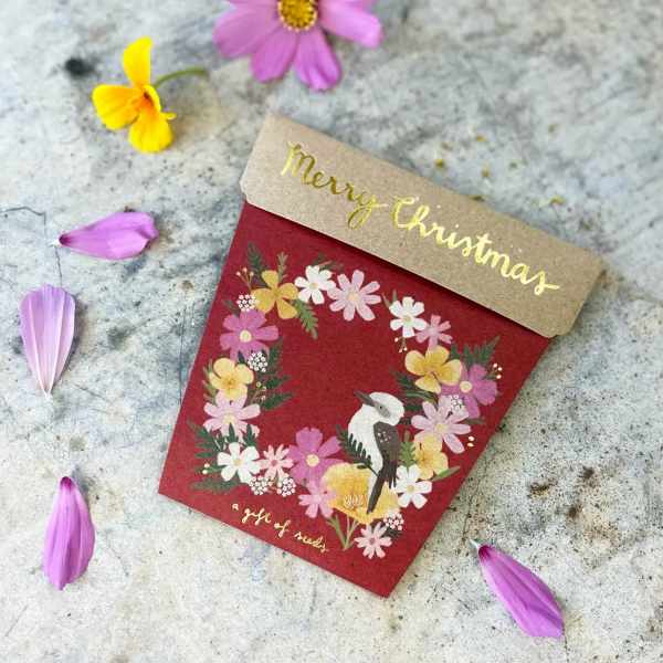 Specially designed for gifting, this Gift of Seeds features a botanical illustration embellished with a native Australian kookaburra and gold foiling for a festive touch.