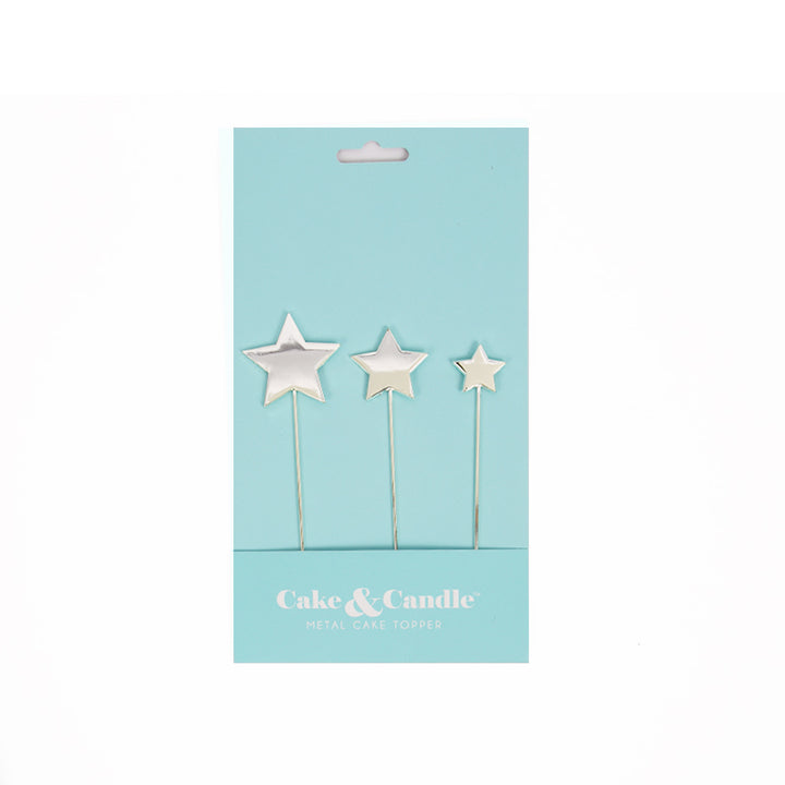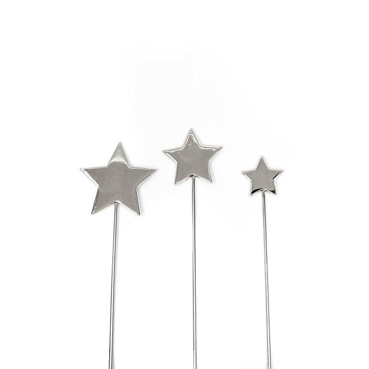 Add stellar style to your cake with this Silver Stars Metal Cake Topper. Made of durable metal, these stars will add a touch of whimsy and fun to any celebration. Great for birthdays, weddings, or any special occasion, this topper will surely be the star of the show!